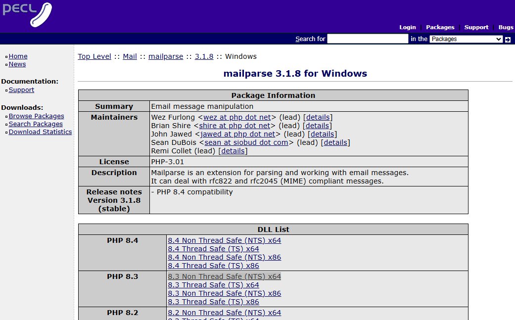ダウンロードした zip を展開し、中身から php_mailparse.dll