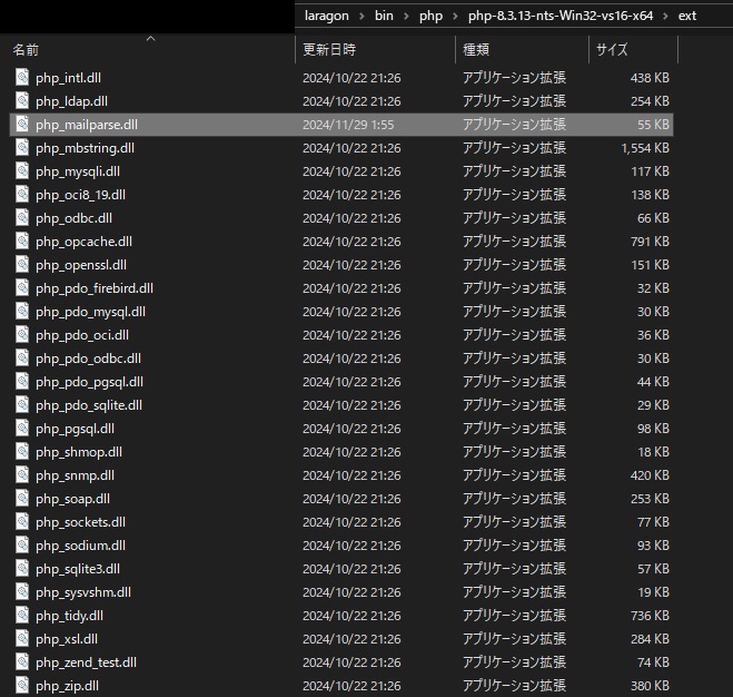 のみ、 Laragon の PHP のフォルダ (当該 PHP のバージョンのフォルダ配下の ext